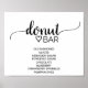 Este simples sinal de bar de caligrafia negra é perfeito para um casamento rústico ou moderno. A design minimalista apresenta uma elegante letra de escrita de pincel e um adorável coração feminino. Personalize o sinal com suas opções de sabor de rosquinha.