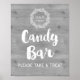 Poster de bar de sinal de de de na árvore de cinza rusticada com ilustração de coroa vintage e texto personalizado e monograma com letra de mão.