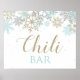Winter ONEderland snowflake bar sigla de comida chili com flocos de neve azuis, prateados e dourados, perfeita para uma primeira festa de aniversário de inverno e coordenação com toda a nossa coleção de terra unida de inverno.