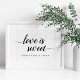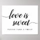 Sinal elegante para a sua mesa de sobremesa de casamento ou características de bufê doce "O amor é doce, por favor, dê uma olhada" em um roteiro de caligrafia preto e em letra de bloco clássico.