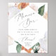 Convide os convidados para desfrutar de uma bebida favorita com nosso charmoso letreiro de barra de mimosa. O letreiro de barra de 11x14 apresenta "barra de mimosa" em letras de caligrafia com instruções ou uma descrição abaixo. Personalize com o nome do seu evento e/ou data ao longo da parte inferior. Um adição elegante para chás de noiva, casamentos e brunchs, nosso letreiro de barra de mimosa é adornado com flores de aquarela em tons pastel de pêssego e verde-sage e folhagens botânicas que combinam com nossa coleção de papelaria de evento Boho Blooms.