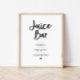 Adicione um toque novo e na moda à sua festa de brunch com esta placa moderna de Bar de Juice minimalista. Perfeito para chás de fraldas, chás de panela ou brunches de aniversário, esta placa imprimível eleva a sua estação de bebidas com design limpo e elegante. Personalize para uma configuração sem esforço de bar de suco que seus convidados adorarão!