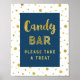 Poster de bar de sinal de doce para chá de fraldas, chá de panela, aniversário ou casamento em azul-marinho escuro e branco com confete dourado e texto de estilo manuscrito. Perfeito para um chá de fraldas, casamento ou chá de panela.
