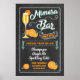 Chalkboard Mimosa Bar para a próxima festa. Apresenta uma mimosa alta com laranjas frescas e fontes divertidas. Todos os textos podem ser alterados sob a palavra "menu".
