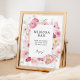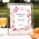 Belo sinal de bar floral mimosa com uma estrutura retangular com flores cor-de-rosa.