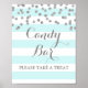 Poster de placa de bar de doce para chá de fraldas, chá de panela ou casamento em um padrão de listras azul-bebê e branco com confete prateado, por favor note que prata é apenas efeito fotográfico. Perfeito para um chá de fraldas, casamento ou chá de panela.