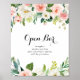 Este sinal de barra aberta de casamento com folhagem verde floral simples é perfeito para um casamento tropical. O design apresenta lindas rosas pintadas à mão em branco, rosa e blush inseridas em folhagem verde, inspirando beleza artística.