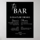 Poster Sinal de barra de bebidas de casamento preto para