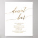 Este sinal de barra de donut com caligrafia em dourado elegante é perfeito para um casamento simples. O design neutro apresenta um pôster minimalista decorado com tipografia romântica e caprichosa em folha de ouro falsa. Personalize o sinal com as opções de sabores de donut.