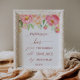 Este sinal de barra de mimosa de rosa de peônia rosa e dourado é perfeito para um casamento elegante. O design floral apresenta uma bela disposição de peônias em aquarela em tons de rosa e coral combinados com caligrafia delicada em folha de ouro rosa falso.