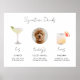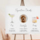Este Sinal de Bebida de Assinatura Ilustrada apresenta ilustrações adoráveis das suas bebidas de assinatura juntamente com uma fotografia divertida de estimação. Altere facilmente a fonte e a cor de fundo para corresponder ao seu evento. Esta placa é perfeita para adicionar uma foto da noiva e do noivo, crianças, ou o seu animal de estimação favorito. Inclui 28 ilustrações populares de bebidas para escolher!