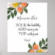 Sinal de bar Momosa com uma ilustração de verde encantador e frutas cítricas com as palavras Momosa bar em um script de caligrafia divertido. Ou edite o título para dizer Mimosa Bar para um Chá de Noiva. Combina com nossa Coleção Citrus Love.