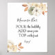 Sinal de bar Momosa com uma ilustração de lindas folhas de outono e abóboras com as palavras Momosa bar em um script de caligrafia divertido. Ou edite o título para dizer Mimosa Bar para um Chá de Noiva. Combina com nossa Coleção Rustic Autumn encontrada na loja Adore Paper Co. Zazzle.