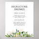 Este sinal de bebidas com assinatura de elegante folhagem de oliveira é perfeito para o seu casamento boho moderno de verão. É projetado com folhas de água-marinha esmeralda e cor de sage, toques de ouro botânico, flores de oliveira rosa beijo e tipografia vintage preta simples. Todos esses elementos se combinam para um sentimento boêmio lindo.