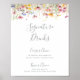 Este sinal de bebidas com assinatura de flor silvestre colorida de prado é perfeito para um casamento rústico. O design apresenta flores de prado multicoloridas em verde, rosa, bege, amarelo, roxo, estilo aquarela.