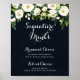 Este sinal de bebidas com assinatura floral branco verde azul é perfeito para um casamento rústico. O design apresenta elegantes peônias brancas em aquarela com folhagem verde em um fundo azul escuro. Personalize o sinal com os nomes da noiva e do noivo e sua bebida favorita.