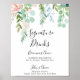 Este sinal de bebidas com assinatura floral tropical colorida é perfeito para um casamento de destino. O design apresenta flores brancas, amarelas, rosadas e bege ilustradas com folhas verdes em aquarela, inspirando elegância.