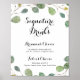 Este sinal de bebidas com caligrafia de eucalipto é perfeito para um casamento rústico. O design apresenta ramos e folhas de eucalipto verde botânico desenhados à mão.