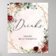 Sinal de bebida geométrica de ouro floral vermelho burgundy para Chá de panela ou Festa de casamento, Entre em contato comigo para obter itens correspondentes ou para personalização, Rosas de Blush ©