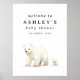 Bem-vindos convidados ao seu chá de fraldas com este adorável poster, com um bonitinho filhote de urso polar e uma mãe. Adicione o nome do convidado de honra, a data de chá e o texto de boas-vindas personalizado usando os campos fornecidos.