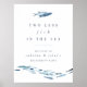 Nossa design de chic costeira para casamentos de verão, festas de noivado ou jantas de ensaio mostra um par de peixes de aquarela azul quebrando fileiras com uma escola de peixes menores ao longo do fundo. "Dois peixes a menos no mar" aparece na elegante letra azul marinho. Personalize este sinal de boas-vindas do evento com três linhas de texto personalizado. Disponível para impressão profissional ou como download digital para impressão local.