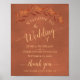 Esta bela placa é uma maneira maravilhosa de dar as boas vindas aos convidados para a sua celebração de casamento. Apresenta um design simples, mas elegante, com um fundo de terracota marmoreado, uma caligrafia de rico e um som de folhas de aquarela em tons de laranja ferrugem e número queimado. As cores são perfeitas para uma cerimônia de outono ou outono.