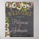 Modelo de sinal de boas-vindas do na moda de casamento outono de poster elegante em um quadro de cinza como fundo com marfim e flores roxas poeirentas e um roteiro de tipografia de ouro e creme falho editável para rico. ++++++++++++++ Personalize-o com seus detalhes! Você pode personalizá-lo alterando ainda mais as fontes e as cores das letras. +++++++++++++++ É adequado para o verão elegante, outono ou inverno/jardim de rústica do país/quintal ou casamentos de quintal ou de fazenda.