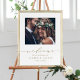 Sinal moderno de boas-vindas ao casamento (poster) com na moda caligrafia e fotografia. Para personalização mais avançada deste design, clique no link Personalizar Mais para alterar a fonte, o tamanho e a cor.