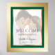 Bem-vindos aos seus convidados para a sua festa de casamento esmeralda verde e dourada com o símbolo elegante de boas-vindas. Personalizar facilmente online. Itens correspondentes disponíveis para complementar este moderno símbolo de boas-vindas do casamento emerald green e gold. Para pedidos personalizados, envie-nos uma mensagem através do bate-papo Zazzle.