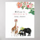 Bela ilustração vintage de animais da selva e sotaques de rosas florais. Uma mãe e um bebê girafa cobertos de rosas cor-de-rosa junto com uma mãe e um bebê elefante novamente cobertos de rosas amarelas. Rosas cor-de-rosa botânicas posicionadas no canto com o nome personalizado posicionado no meio. Personalize o nome e faça-o seu. Sinal de boas-vindas ideal para chá de bebê. Visite nossa loja para ver nossa coleção completa.