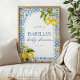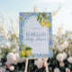 Inspirado pelo encanto da Costa Amalfi, este sinal de boas-vindas do chá de fraldas apresenta limões de aquarelas, padrões de azulejos mediterrânicos e uma elegante tipografia azul. Um detalhe brilhante e convidativo para saudar convidados na celebração temática dos citros italianos.