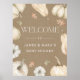 O encantador sinal de boas-vindas do chá de fraldas de outono apresenta uma borda de abóboras brancas e cremosas de aquarela e folhas de outono, com os detalhes de boas-vindas do chá de fraldas em letras brancas sobre um fundo kraft castanho brando. Perfeito para chás de fraldas de outono ou época de Halloween.