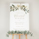 Este sinal de boas-vindas do ensaio de queda verde-ouro é perfeito para um ensaio de casamento moderno. A design apresenta uma fascinante folhagem artística verde e dourada.