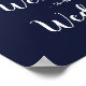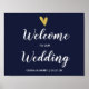 Folha de ouro elegante, sinal de boas-vindas ao casamento com guião branco-chic num fundo azul-marinho.