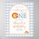Nosso pequeno primeiro aniversario azul Gingham Sinal de Boas-vindas