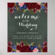 Poster Sinal de Boas-vindas Burgundy Blue Floral
