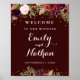 Poster Sinal de Boas-vindas Burgundy Dourada Queda Floral