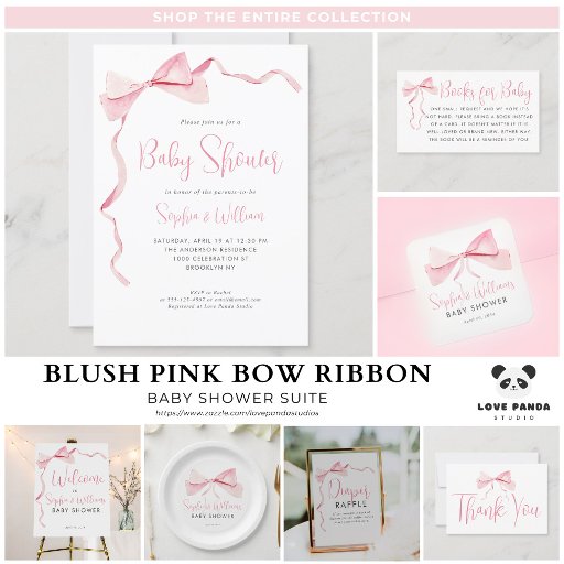 Pink Watercolor Ribbon Bow Girl Baby Shower 001Criado por Sophie Ames