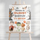 Bem-vindos a pequenos fantasmas e goblins com este sinal de boas-vindas da Festa de aniversário de Halloween assustador! Com monstros bonitos de aquarela, uma casa assombrada, e árvores inquietantes, é a decoração perfeita para uma comemoração de aniversário de fantasias de Halloween.