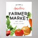 O tema de mercado de um fazendeiro bonitinho é festa de aniversário de boas-vindas com poster de boas-vindas, com ilustração de vegetais de couve-flor, cenoura, tomate, ervilhas verdes, batidas, cebola. O texto diz "Bem-vindos ao mercado de agricultores da XX. Local do comprar, Comprar fresco." Perfeito para uma festa de menina.
