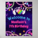 Sinal de boas-vindas em uma variedade de tamanhos para uma boliche de neon com brilho arco-íris para meninas.