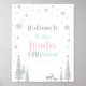 Este sinal de boas-vindas da Maravilha de inverno apresenta flocos de neve bonitos e a tipografia "Winter Onederland" em azul-prata, rosa e menta. Perfeito para uma primeira festa de aniversário de inverno para sua garotinha! Convites e suprimentos de festa estão disponíveis no meu compro BaraBomDesign.