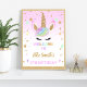 Adicione faísca e magia à sua entrada de festa com este sinal de boas-vindas de aniversário de unicórnio rosa. Apresentando um doce unicórnio, sotaques brilhantes e cores pastéis, é perfeito para uma celebração mágica. Personalize facilmente com o nome e a idade do seu filho.