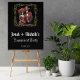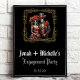 Este letreiro de boas-vindas para festa de noivado apresenta um design intrigante e visualmente impressionante, apresentando um fundo preto que serve como uma tela dramática para a ilustração principal. O convite em si é feito de papel de alta qualidade e textura com acabamento aveludado, adicionando um toque de luxo à aparência geral.