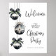 Bem-vindos convidados para a sua comemoração de férias com este divertido e minimalista sinal de boas-vindas ao Enfeites de natal. O design apresenta três adornos elegantes de cor branca e preta escorrendo pelo lado, acentuados com verde e detalhes do arco para um toque festivo e sofisticado. A saudação e os detalhes do evento estão empilhados à direita em uma combinação na moda de scripts e fontes serif, criando um layout limpo e moderno que combina elegância com charme de feriado lúdico. Perfeito para encontros casuais de família, festas de escritório ou eventos sazonais formais, esse sinal dá um tom festivo no momento em que os convidados chegam. Todo texto e cores podem ser personalizados para se adequarem ao seu estilo de celebração. Disponível em uma versão de impressão ou você pode comprar como um arquivo digital baixável para o impressão em casa ou localmente.