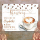 Este sinal de boas-vindas de chás de bebê elegante apresenta grãos de café e uma xícara de café, juntamente com uma tipografia elegante que pode ser personalizada com seu nome e data especial. Criado por Thisisnotme©
