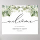 Elegante Eucalyptus Greenery Foliage Sinal de Boas-vindas. Este cartaz de casamento de aquarela apresenta folhagem de aquarela verde com pequenas flores brancas criando um olhar elegante para o dia do seu casamento. É perfeito para jardins, primavera, verão, rústicos, matrizes verdes de sábio. Você pode editar/personalizar todo o Modelo. Se precisar de ajuda ou produtos correspondentes, entre em contato comigo. Estou feliz em criar os produtos personalizados mais bonitos para você!