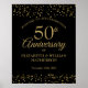 Sinal de boas-vindas de aniversário de 50 anos preto com confete dourado, personalize com detalhes do seu aniversário de casamento de 50 anos em tipografia dourada. Criado por Thisisnotme©