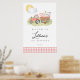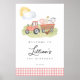 Fazenda adorável, sinal de boas-vindas com animais de criação, um celeiro e impressão de gingham rosa.