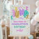 Bem-vindos aos seus convidados com energia e entusiasmo usando este vibrante Sinal de Boas-vindas da Festa de aniversário Jump! Apresentando cores ousadas, silhuetas lúdicas, sotaques reluzentes e um design dinâmico, este sinal define o tom para uma celebração cheia de diversão.